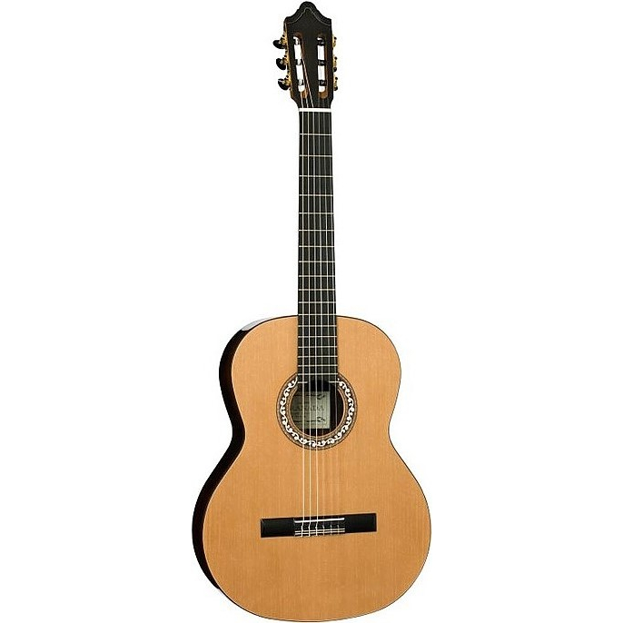 Voici une guitare classique Kremona Artist Solea qui pose immédiatement son statut haut de gamme en arborant des essences de bois comme un magnifique cèdre massif pour la table et des éclisses et un dos en cocobolo également massif. Ici tout est fait pour procurer le maximum de sensations au guitariste qui recherche un instrument d’exception ou la précision de chaque note entre en résonance avec une puissance bien maîtrisée sur chaque registre du spectre sonore.